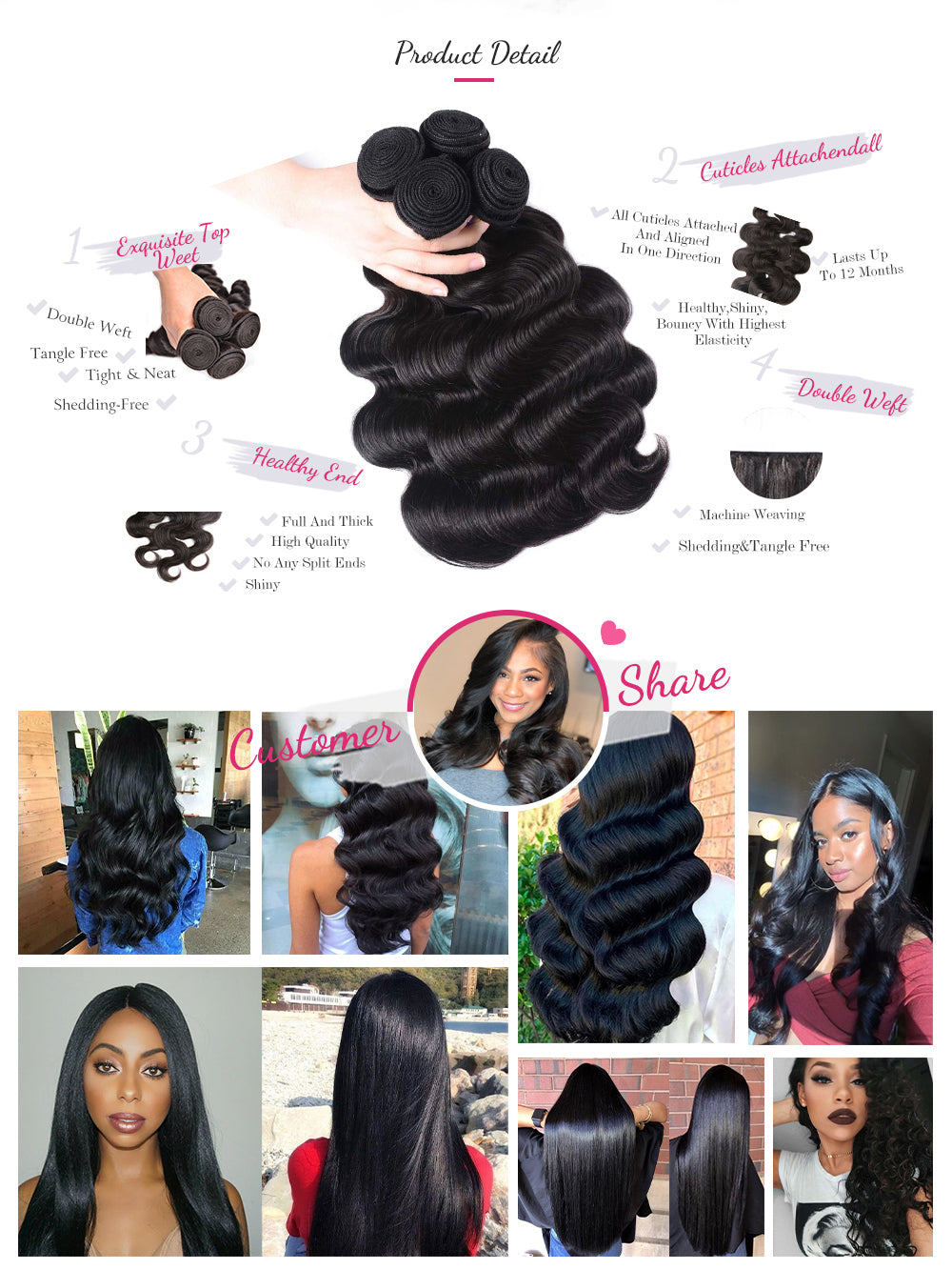 Top Quality 3 Bundles 10-30 inch Virgin Body Wave Human Hair Natural Black Color