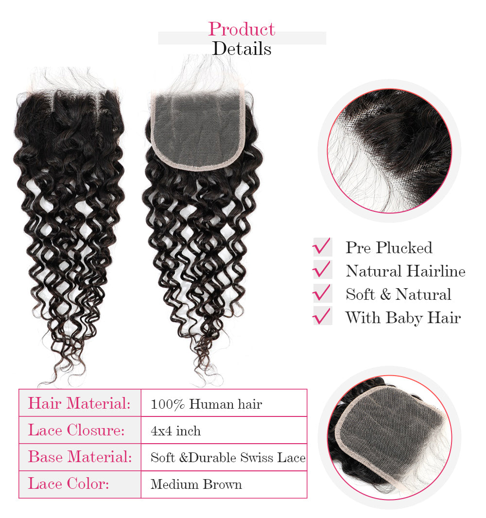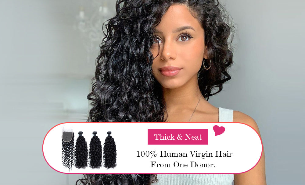 100% Human Hair Bundles Vigin Cuticle Aligned Curly Hair With Lace Closure